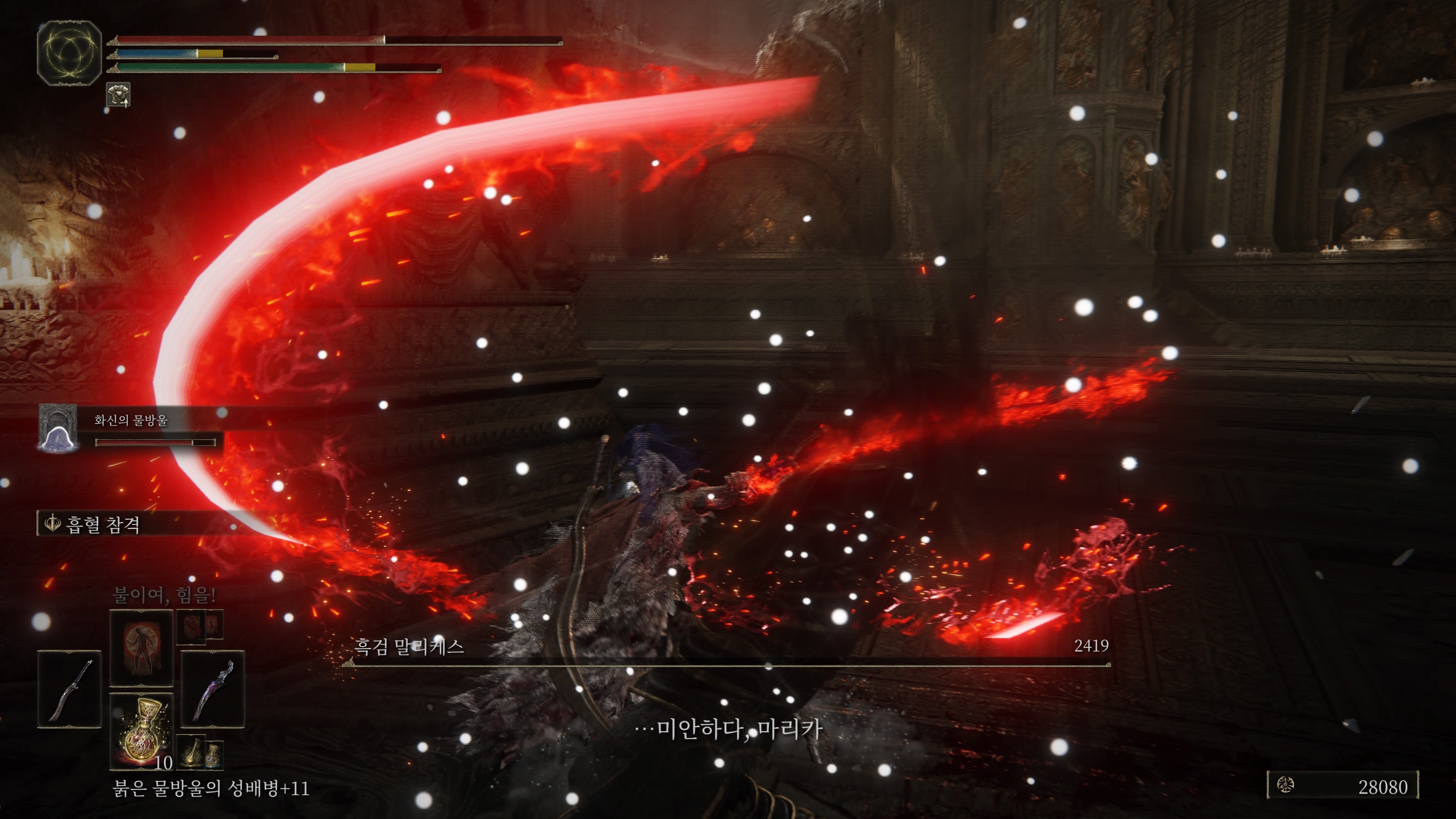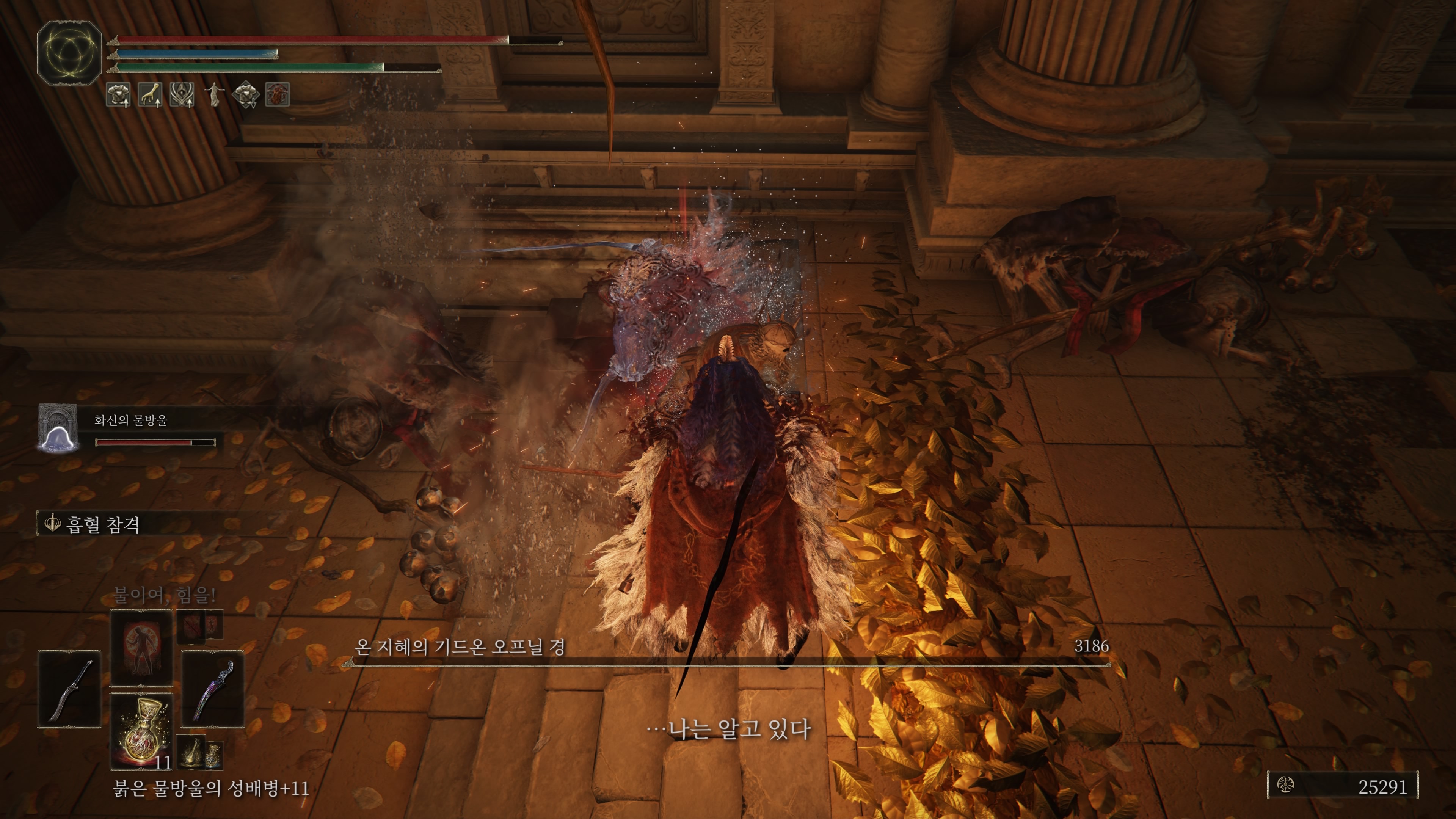 운좋게 안개+돌진기를 3번 피했다.. 정확히는 2번은 굴러서 피하고 1번은 맞았는데 반피가 나감ㅋㅋ