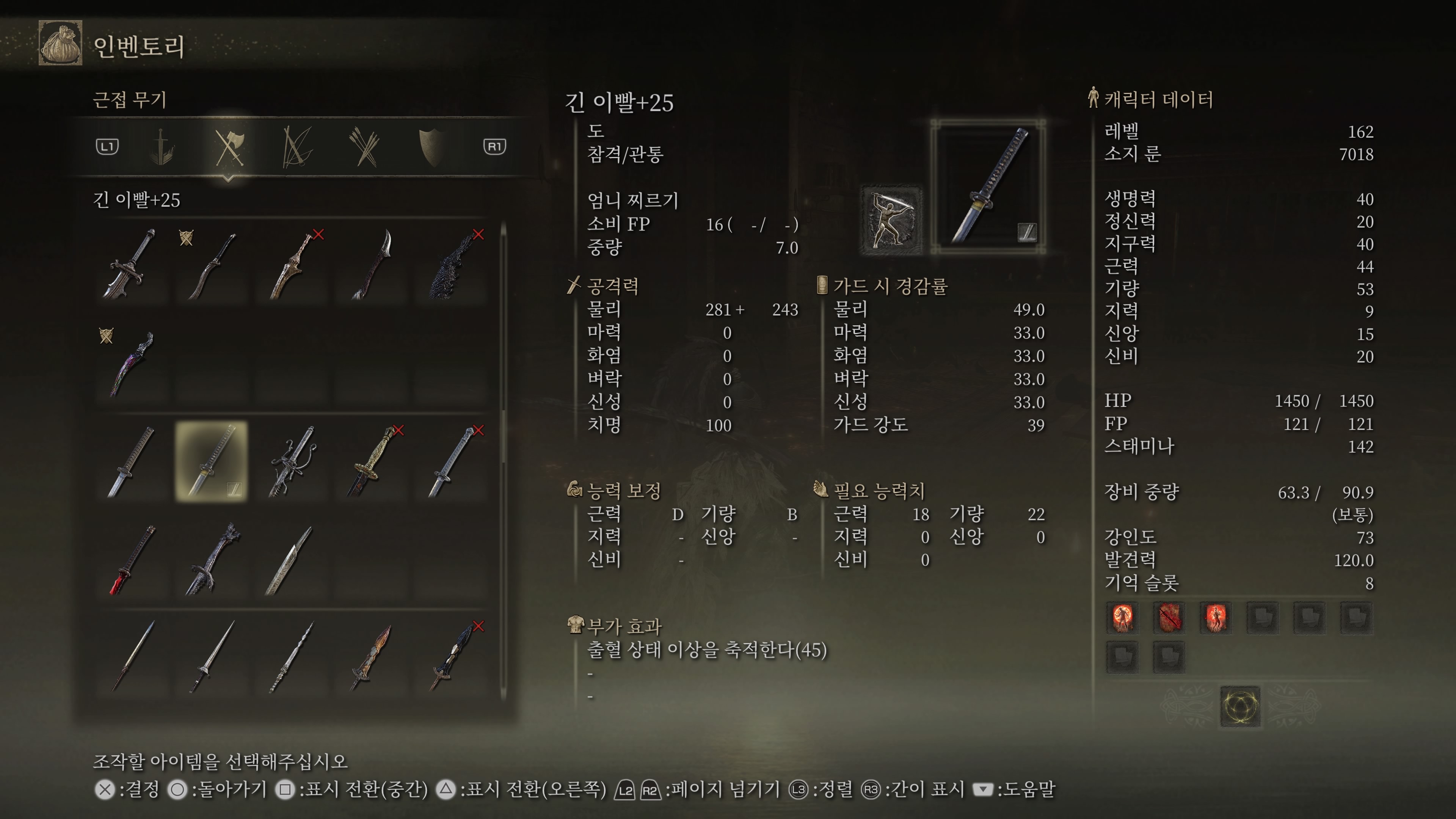 습득한 아이템 바로 풀강..