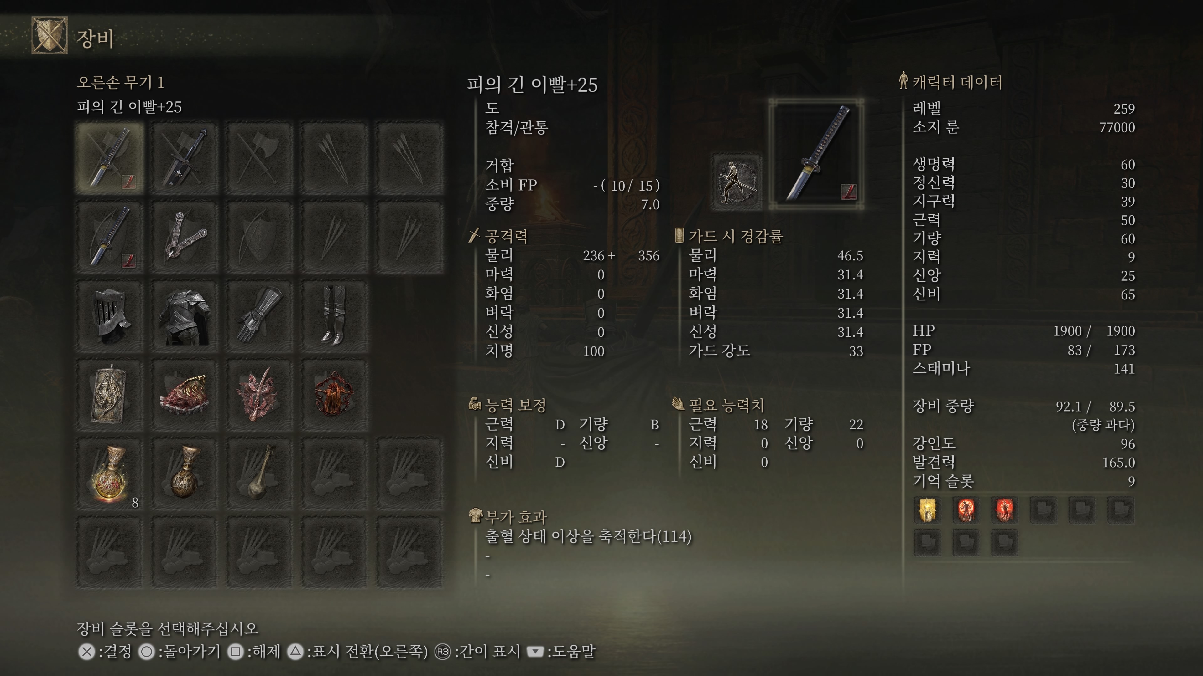 밤기병의 갑옷(중량 12)을 입고있었는데