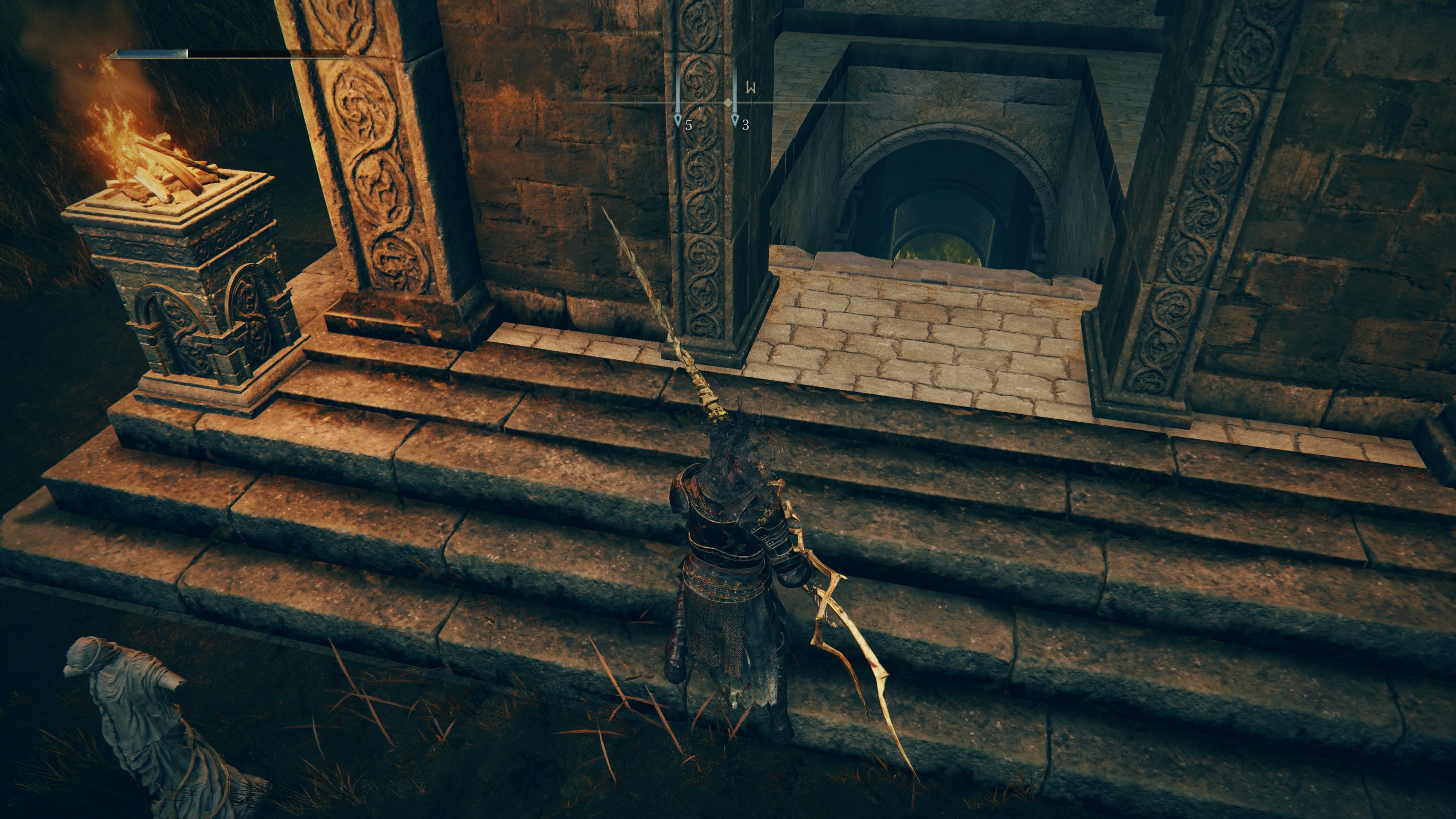 정면~좌측엔 커다란 화로? 거인이 돌아다니고 있어서 일단 우측으로 선회했다.